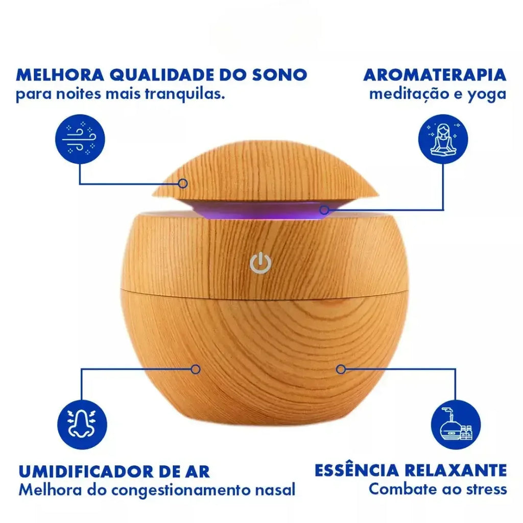 Umidificador Ultrassônico Madeira USB – Design Natural, Ar Puro e Bem-Estar em Um Só Produto