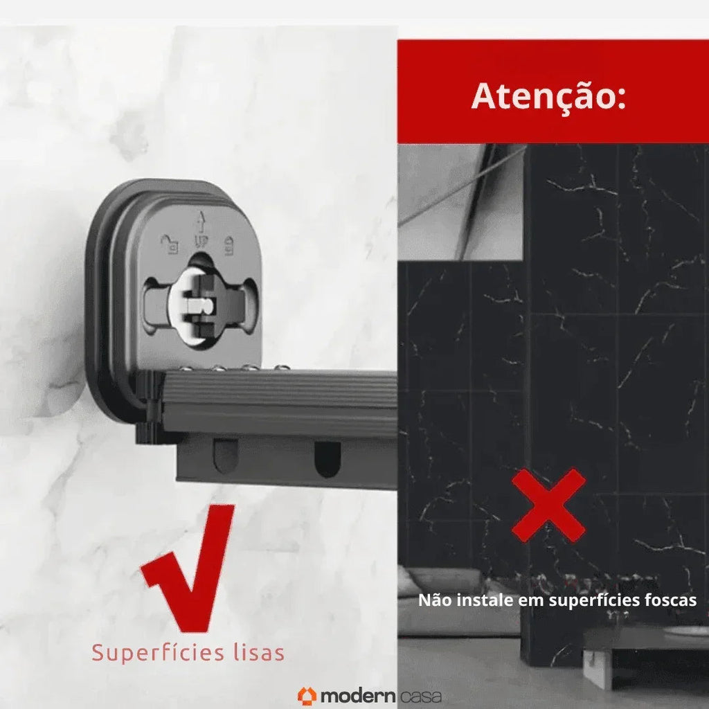 Instalação sem furos : fixação com ventosas de alta aderência em superfícies lisas, sem paredes danificadas